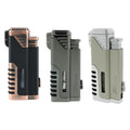 The Gotham is a quadruple torch lighter that has a built in cigar punch-cutter. This torch is equipped with three wind resistant torch flames, a slide down punch cutter, and an over-sized flame adjustment wheel, this is the great choice for an all-in-one lighter and it comes in three colors to select.