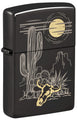 This classic High Polish Black Zippo lighter features a sleek Western landscape, intricately etched using a minimalist Laser Two-Tone technique with delicate brass accents. A stylish and timeless accessory for any collection.