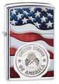 You'll show the love you have for the United States of America when you own this patriotic lighter. The American Flag takes on a new and unique charm when placed on a high polish chrome lighter.