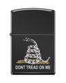 This Don't Tread On Me Design Zippo lighter comes in a black ice finish. It is perfect gift in its simplicity. It comes packaged in an environmentally friendly gift box with a lifetime guarantee. For optimal performance, use with Zippo premium lighter fluid.