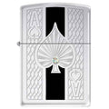 Always keep and Ace up your sleeve, or in your pocket. You can do so with this classic Deep Pockets Heavy Walled Zippo lighter on a armor crystallized finish chrome. It features an Ace of Spades Card on a silver background with a beautiful Swarovski Crystal on the lighter in the middle. Perfect gift for any card player or anyone just wanting a bit of luck. It comes packaged in an environmentally friendly gift box with a lifetime guarantee. For optimal performance, use with Zippo premium lighter fluid.