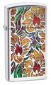 This Fusion glass like Floral Design Zippo lighter comes in a high polish chrome finish. It’s embellish color selection gives off a kaleidoscope finish. It is the perfect gift in its simplicity. It comes packaged in an environmentally friendly gift box with a lifetime guarantee. For optimal performance, use with Zippo premium lighter fluid.