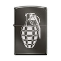 A detailed printed image of a grenade, not much more can be said. It just looks really cool on a black ice finish. It comes packaged in an environmentally friendly gift box with a lifetime guarantee. For optimal performance, use with Zippo premium lighter fluid.