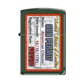 This Gun Permit Zippo lighter on a green matte finish displays a gun permit for an American Citizen. It comes packaged in an environmentally friendly gift box with a lifetime guarantee. For optimal performance, use with Zippo premium lighter.