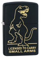 This "Licensed to carry small arms." Zippo Lighter comes in a Black Matte finish. It is the perfect gift in its simplicity. It comes packaged in an environmentally friendly gift box with a lifetime guarantee. For optimal performance, use with Zippo premium lighter fluid.