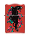 This Panther w/ Roses Design Zippo lighter comes in a red matte finish. It is the perfect gift in its simplicity. It comes packaged in an environmentally friendly gift box with a lifetime guarantee. For optimal performance, use with Zippo premium lighter fluid.