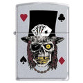 Calling all Gamblers! This Skull with Top Hot Zippo lighter from Lighterusa.com is the perfect lighter for you. This lighter display a skeleton with a hat and on his hat there are four 3 aces and 2 kings. On the corners of this lighter there is each suit. Unbeatable lifetime warranty It comes packaged in an environmental friendly box.