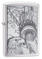 The perfect way to show your Patriotism is with this classic Something Patriotic Emblem windproof Zippo lighter with a Brushed Chrome finish. The Beautiful Bold design features a relief of an Eagle, the Statue of Liberty Torch and the American Flag. It is a great gift for one and all. It comes packaged in an environmentally friendly gift box with a lifetime guarantee. For optimal performance, use with Zippo premium lighter fluid.