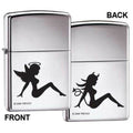 This Trucker Angel Devil Zippo lighter from Lighterusa.com displays a women's figure on a high polish finish. On the front the lady has a hailo with angel wings and on the back the lady has a devil's tail and horn. If you are feeling devilish than show the world the devil side and if you are feeling like an angel show them that side. This lighter comes packaged in an environmentally friendly gift box and has an unbeatable lifetime warranty. For optimum performance, fill with Zippo premium lighter fluid.