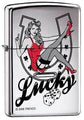 This Lucky Pinup Zippo lighter comes in a satin chrome finish. It comes packaged in an environmentally friendly gift box with a lifetime guarantee. For optimal performance, use with Zippo premium lighter fluid.