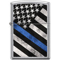 This Thin Blue Line Zippo lighter comes in satin chrome finish. It is the perfect gift in its simplicity. It comes packaged in an environmentally friendly gift box with a lifetime guarantee. For optimal performance, use with Zippo premium lighter fluid.
